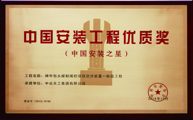 中国安装工程优质奖(中国安装之星)-神华包头煤制烯烃项目空分装置一标段工程