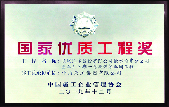 2018-2019年度国家优质工程奖-长城汽车股份有限公司徐水哈弗分公司整车厂三期一标段焊装车间工程