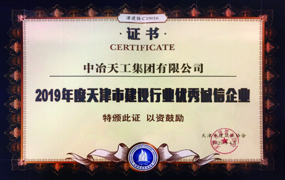 2019年度天津市建设行业优秀诚信企业