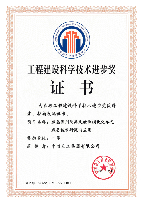 应急医用隔离及检测模块化单元成套技术研究与应用获得工程建设科学技术进步二等奖