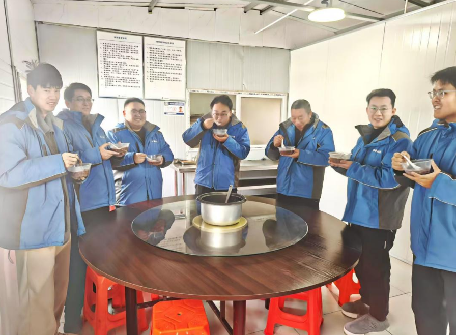 活動現場,項目部全體員工齊聚一堂,以粥為媒,共慶傳統佳節,讓傳統民俗在團圓協作中煥發新生。經過挑選食材、起鍋燒水、慢火熬煮幾道工序,一碗碗熱氣騰騰的臘八粥被端上了餐桌。大家一邊品嘗著香甜的臘八粥,一邊暢談家常、分享趣事。有人說起老家臘八節的習俗,要泡臘八蒜、煮臘八面;有人回憶起項目開工以來的難忘瞬間,團結協作攻克技術難題、烈日下堅守崗位推進施工進度,那些并肩作戰的時光,在熱氣騰騰的粥香里,都化作了彼此心中最珍貴的回憶。